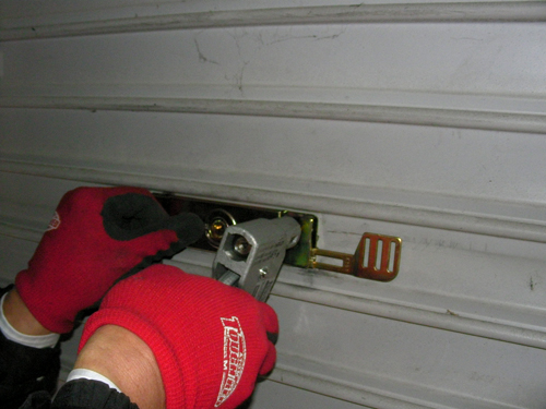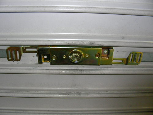 鍵を閉めると、シャッターのレールに引っ掛けることで、