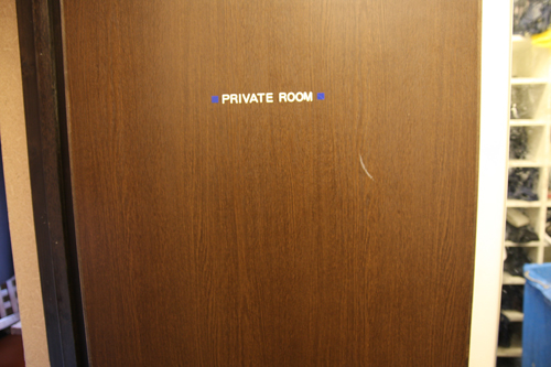 木製の扉。本日はこの扉に錠前を取り付けます。
